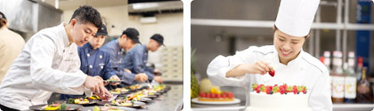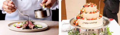 - 〇ウエディングパーティーや一般宴会・イベント等で提供するフルコースやブッフェ料理の調理デザートやウェディングケーキの作製